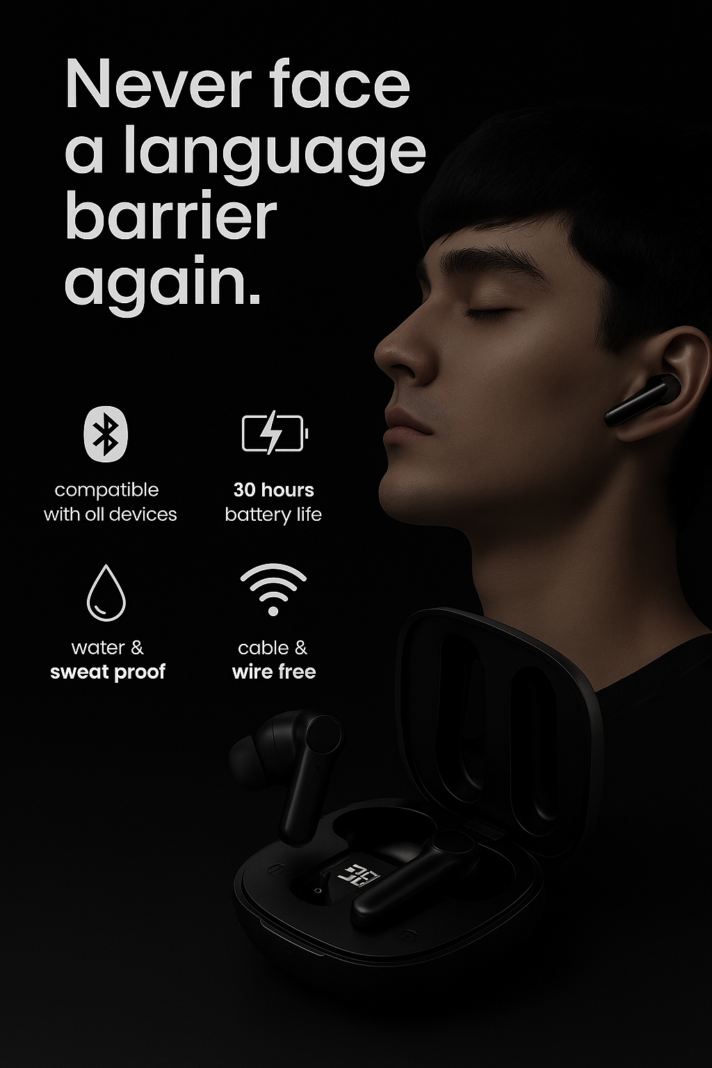 Experience unmatched audio clarity with our innovative device designed for seamless communication in any language, all encased in a sleek, modern design.
